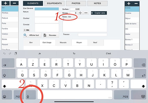 Enrichissez vos libellés avec les termes que vous utilisez souvent (ex. “sifflement radiateur”, “traces d’humidité mur nord”). Vous pourrez ensuite les appeler par la voix et gagner encore plus de temps ! ✅ Résultat : un état des lieux plus fluide, précis et moderne — sans perdre de temps à taper chaque mot.